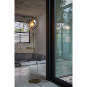 Lámpara de pie clásica de latón con globo de vidrio Light and Living Rakel