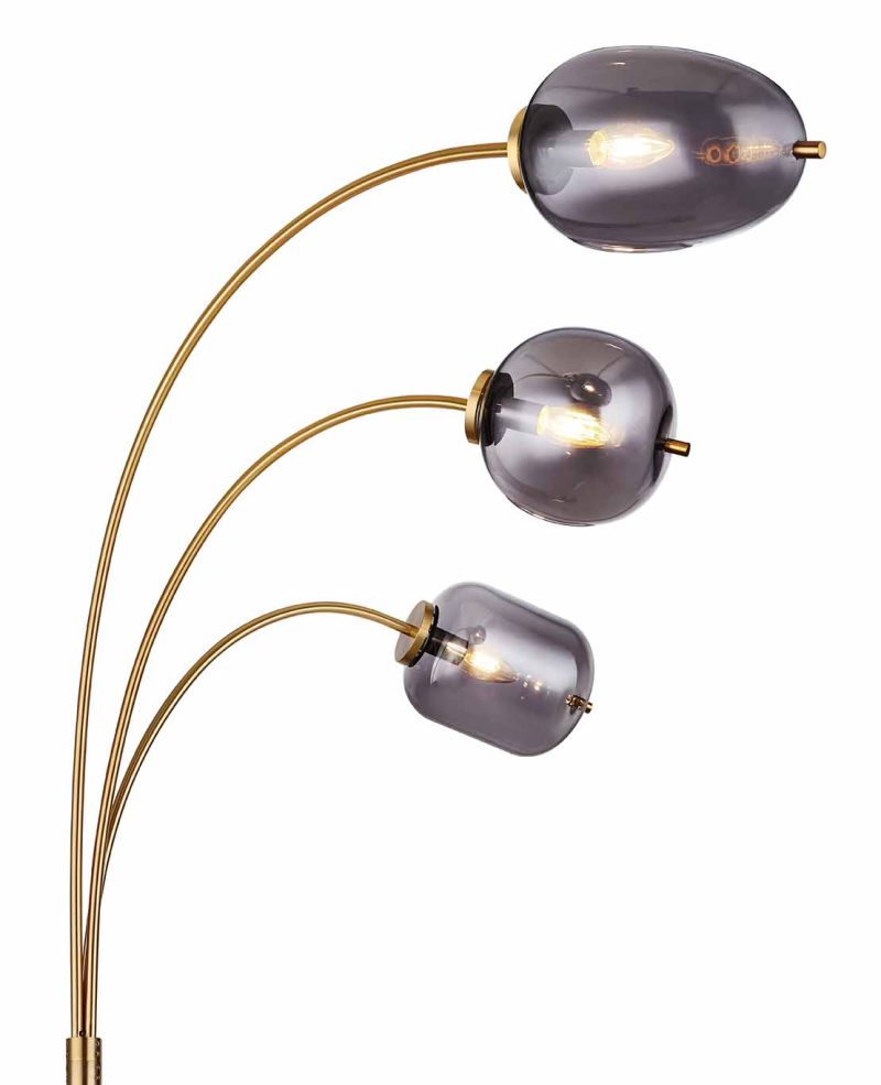 Esta majestuosa lámpara de pie de la serie Blacky combina iluminación funcional con encanto decorativo. Con una base de metal de color latón y tres varillas que sostienen bombillas E14 bajo pantallas de vidrio ahumado, esta lámpara se adapta perfectamente a cualquier decoración moderna.