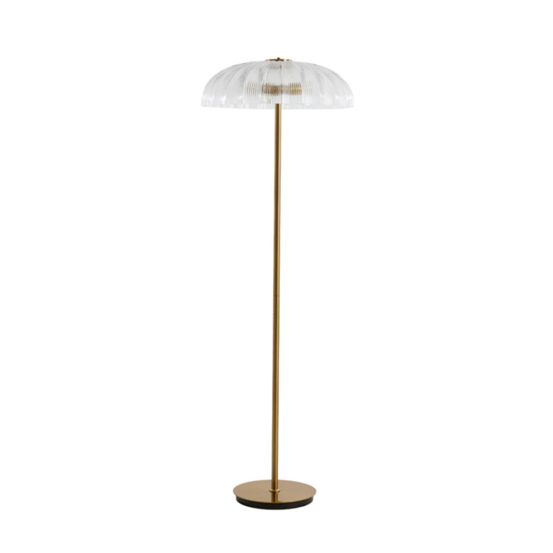 Lámpara de pie clásica dorada con pantalla de vidrio tipo paraguas Light & Living Fungo