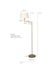 Esta lámpara de pie de bronce de la serie Bella de Mexlite combina elegancia con funcionalidad. Gracias a la pantalla de lino color crema y al brazo oscilante ajustable, la luz siempre brilla exactamente donde la necesitas. La lámpara tiene un casquillo E27 y es adecuada para fuentes de luz de hasta 40 vatios. Con un interruptor de cadena, puedes encender o apagar la lámpara fácilmente. La altura total es de 154 cm, con un alcance de 45 cm y un diámetro de pantalla de 30 cm. Esta elegante lámpara de pie es perfecta para el comedor, la sala de estar o una oficina (en casa). La lámpara viene con un cable de 180 cm.
