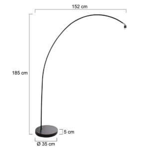 Lámpara de pie negra redonda y curvada con base Mexlite Solva