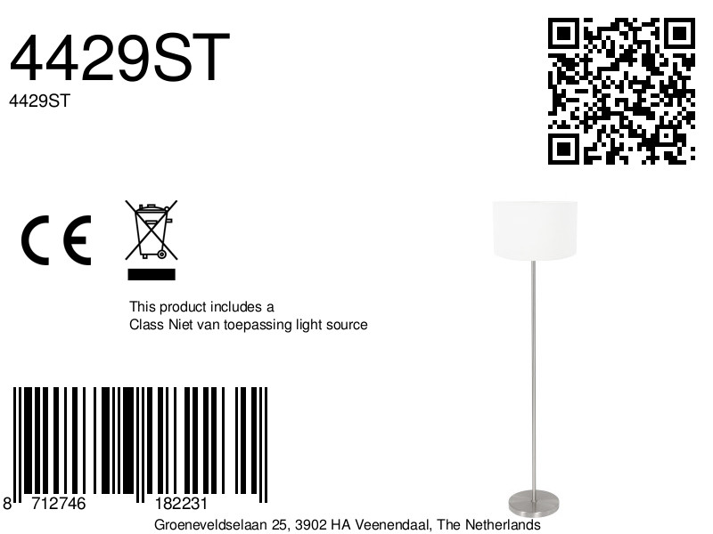 Lámpara de pie con pantalla blanca y base color acero Mexlite Noor