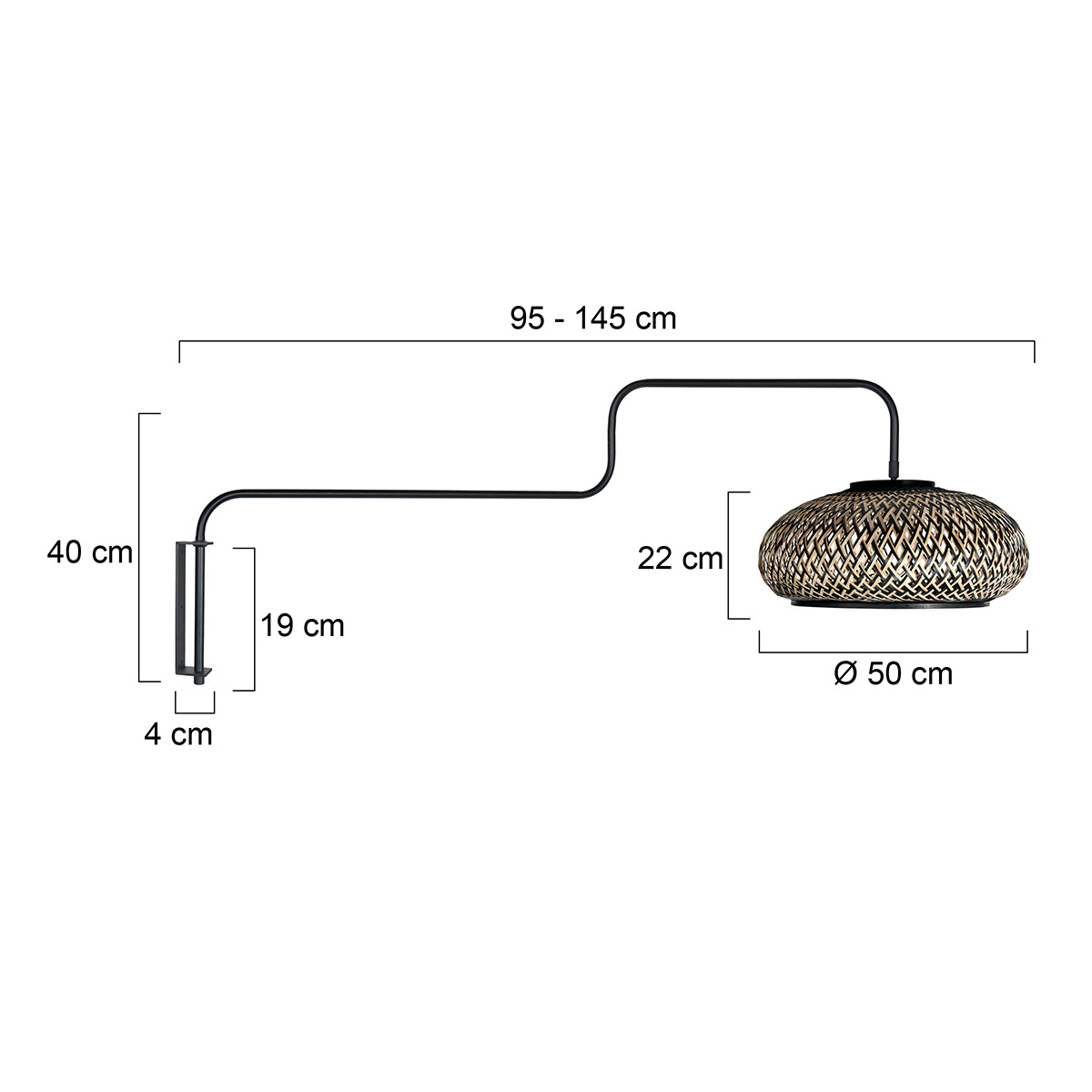 La lámpara de pie Bloeba 4505ZW combina materiales naturales con un siluete moderno. La amplia pantalla de bambú en color natural y negro proporciona una cálida reflexión de luz y le da a la lámpara un carácter único. El armazón negro de 4141ZW forma un fuerte contraste y convierte esta lámpara en un atractivo decorativo en la sala de estar, el dormitorio o un acogedor rincón de lectura. Con una altura de 175 cm y una base robusta de 40 cm, la lámpara se mantiene estable en cualquier espacio.