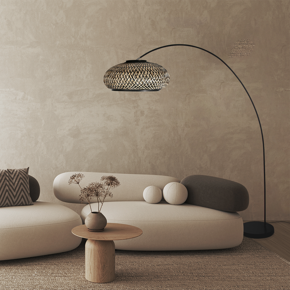 La Solva Bamboo 4232ZW es una elegante lámpara de pie que combina materiales naturales con un minimalismo moderno. La pantalla de bambú trenzado a mano con un diámetro de 50 cm crea un efecto de luz cálido y juguetón que añade ambiente a cualquier espacio. La base metálica negra y el delgado tallo le dan a la lámpara un perfil limpio que se adapta a interiores modernos, escandinavos y bohemios.