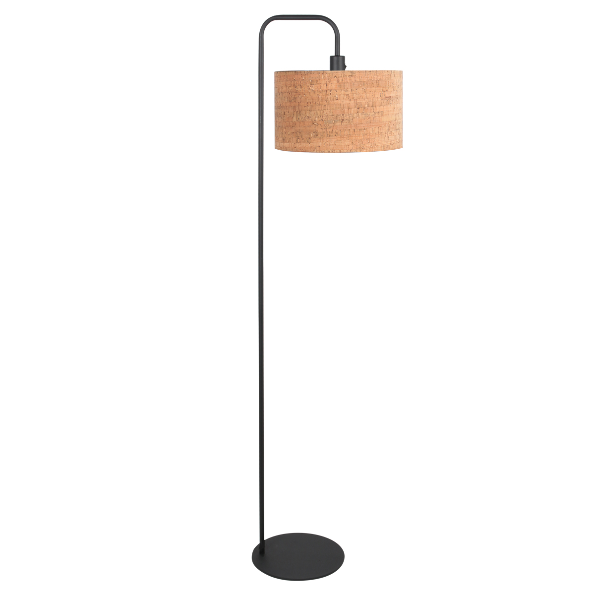 Lámpara de pie con pantalla de corcho beige y estructura negra Mexlite Forma