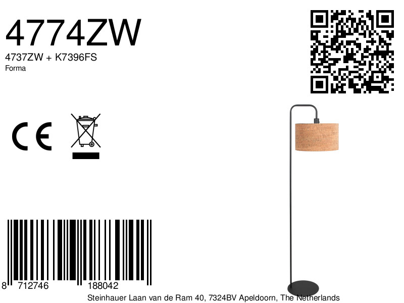 Con una pantalla de 30 cm de diámetro y 18 cm de altura, la lámpara tiene un tamaño bonito y equilibrado que se adapta bien junto a una sillón, sofá o armario. La lámpara es adecuada para una fuente de luz E27 de hasta 40 vatios y se puede ajustar fácilmente a cualquier momento del día con una fuente de luz regulable y un regulador externo. La combinación de metal y corcho proporciona a esta lámpara de pie un aspecto suave y original que es un poco diferente de los modelos estándar.