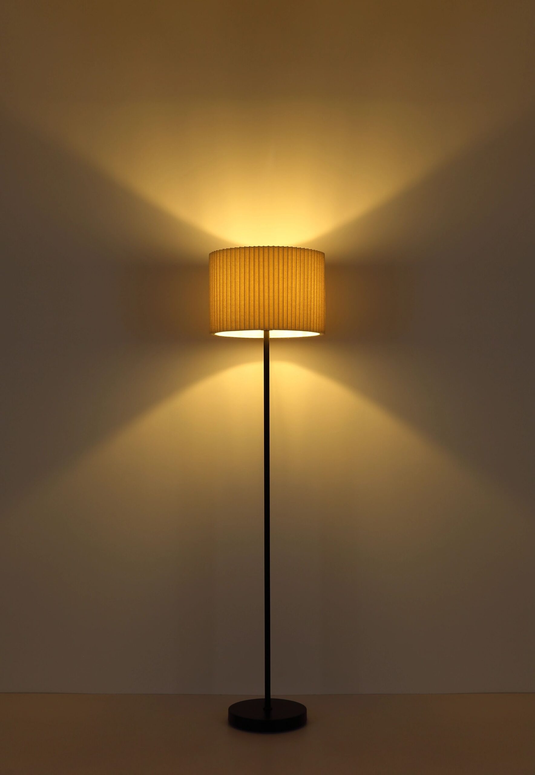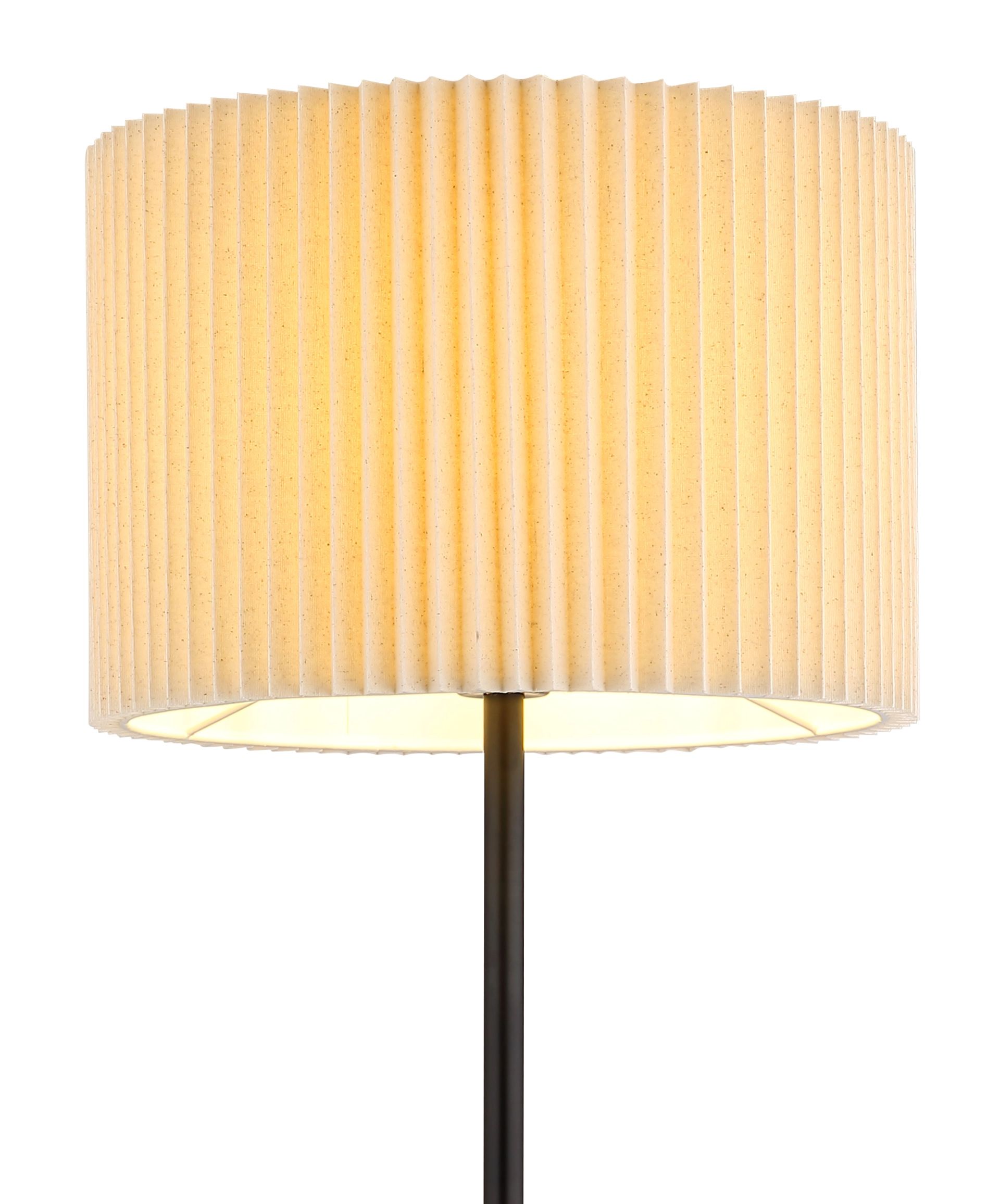 La lámpara de pie PAGE es una perfecta fusión de diseño tradicional y elegancia moderna, lo que la convierte en un verdadero punto focal en cualquier espacio. Con una pantalla textil cilíndrica de color natural, adornada con finos pliegues, la lámpara crea una agradable y difusa distribución de la luz. Esto contribuye a una atmósfera cálida y acogedora en su interior. El cuerpo de la lámpara de metal negro mate realza su apariencia atemporal y elegante, mientras que el diámetro de 380 mm permite integrar la lámpara en diversos espacios habitables. De este modo, la lámpara de pie se adapta perfectamente tanto a estilos de interior modernos como clásicos.
