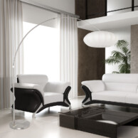 Lámpara de pie curva con estructura metálica y tulipa blanca Steinhauer Sparkled light acero y blanco