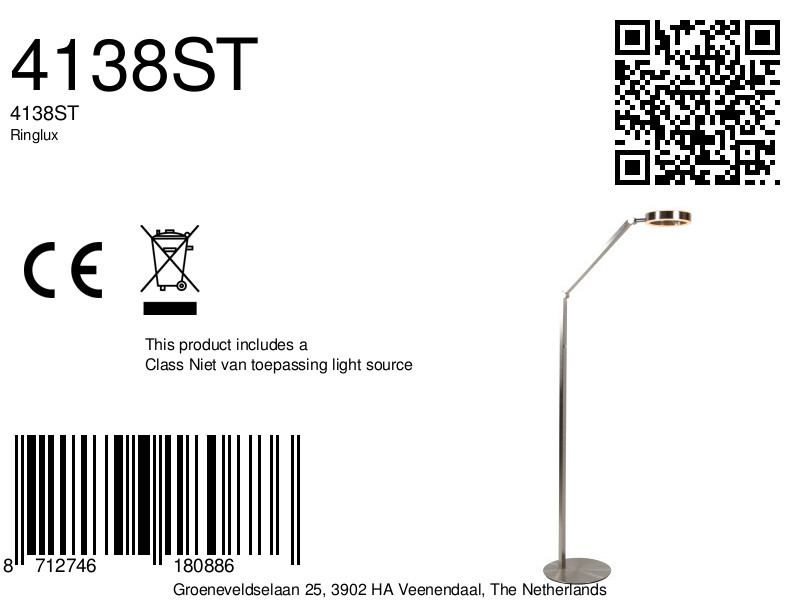 La Ringlux 4138ST es una lámpara de pie de diseño elegante, fabricada en acero cepillado, que ofrece un óptimo confort de lectura. Su diseño esbelto se adapta perfectamente al lado de un sofá o sillón, y gracias a los puntos de bisagra ajustables, la altura se puede modificar entre aproximadamente 110 y 140 cm. La lámpara cuenta con dos fuentes de luz LED integradas de 5 vatios cada una, que proporcionan tanto luz directa como iluminación indirecta, sumando un total de aproximadamente 1000 lúmenes.