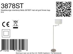 Esta lámpara de pie de color acero de la serie Bella de Mexlite es una opción versátil para un interior moderno. La pantalla de lino blanco grueso difunde la luz de manera suave y agradable. El brazo oscilante proporciona flexibilidad en la dirección de la luz. Equipado con un casquillo E27 y adecuado para fuentes de luz de hasta 40 vatios. Con una altura de 154 cm, un alcance de 45 cm y un diámetro de pantalla de 30 cm, esta lámpara de pie es ideal para diversos espacios habitables como el comedor, la oficina en casa o la sala de estar. Se entrega con un cable de 180 cm y 2 años de garantía de fábrica.