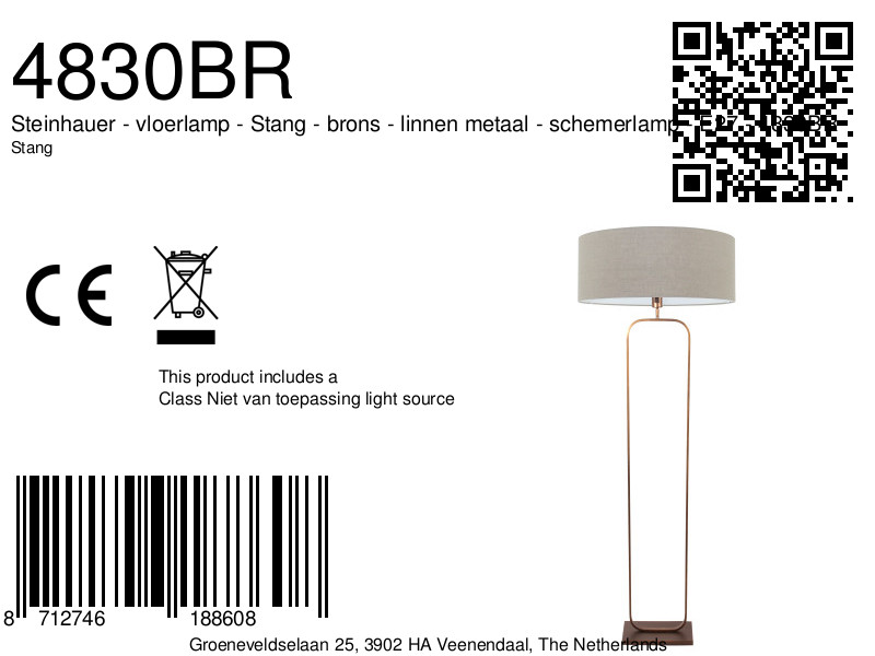 Lámpara de pie de bronce con lino gris y estructura robusta Steinhauer Stang