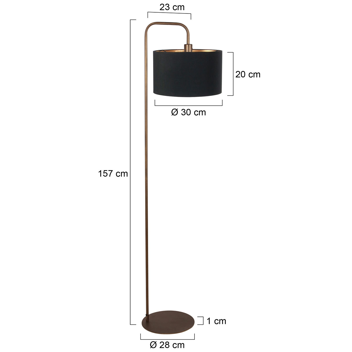 Lámpara de pie de bronce con pantalla de lino negro y interior dorado Mexlite Forma