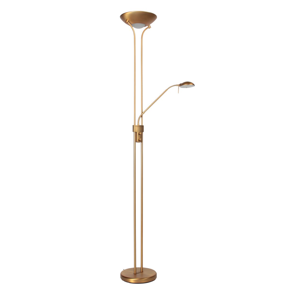 Lámpara de pie de bronce de 2 luces con uplighter y brazo de lectura Mexlite Curtis