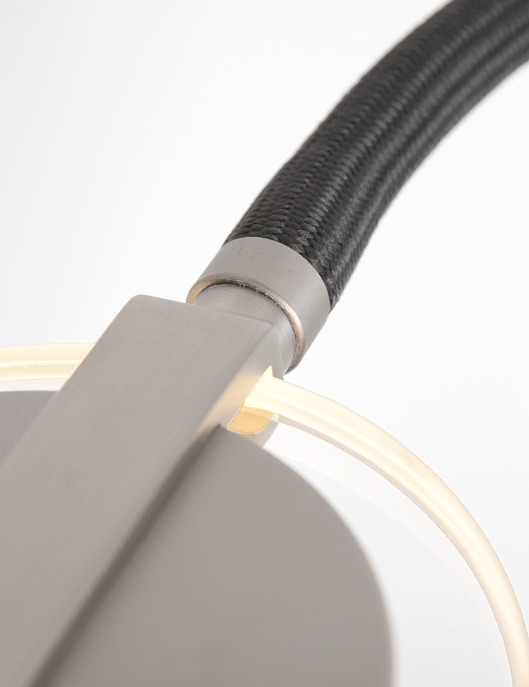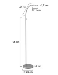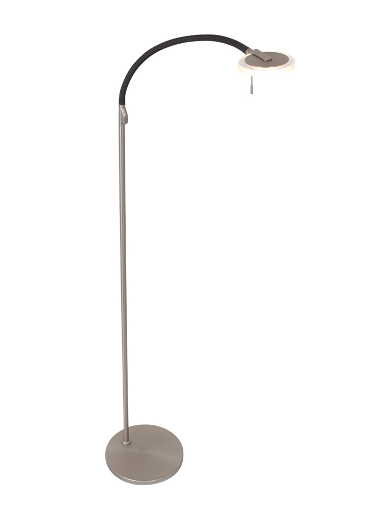 La lámpara de lectura Turound de color acero ofrece la mezcla perfecta entre estilo y facilidad de uso. El brazo flexible y el reflector de vidrio proporcionan una iluminación agradable y dirigida. Con un módulo LED reemplazable de 10 vatios que ofrece 1000 lúmenes, disfrutarás de una luz clara y ajustable. Gracias al regulador de presión en el tubo, puedes ajustar fácilmente la intensidad de la luz. La lámpara es ajustable entre 125 y 145 cm de altura y viene con un cable de 180 cm para mayor flexibilidad. ¡Una elección ideal para cualquier rincón de lectura!
