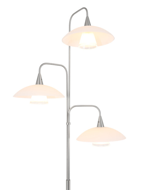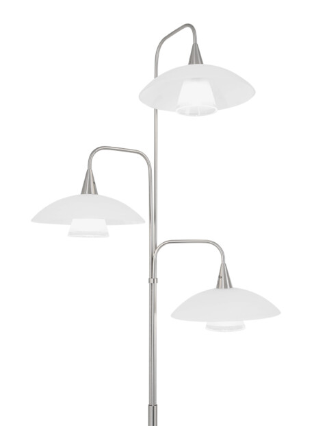 En una decoración moderna o rural, esta lámpara de pie de Steinhauer se presenta muy bien. La lámpara de tres luces cuenta con pantallas de vidrio lechoso que crean un ambiente cálido y acogedor en el hogar. La estructura de acero le da un toque moderno al conjunto. La lámpara no es ajustable en altura, pero con el regulador de pulso puedes ajustar la intensidad de la luz a tu gusto.