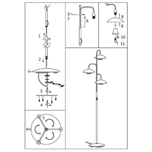 Lámpara de pie clásica de metal y vidrio Steinhauer Tallerken