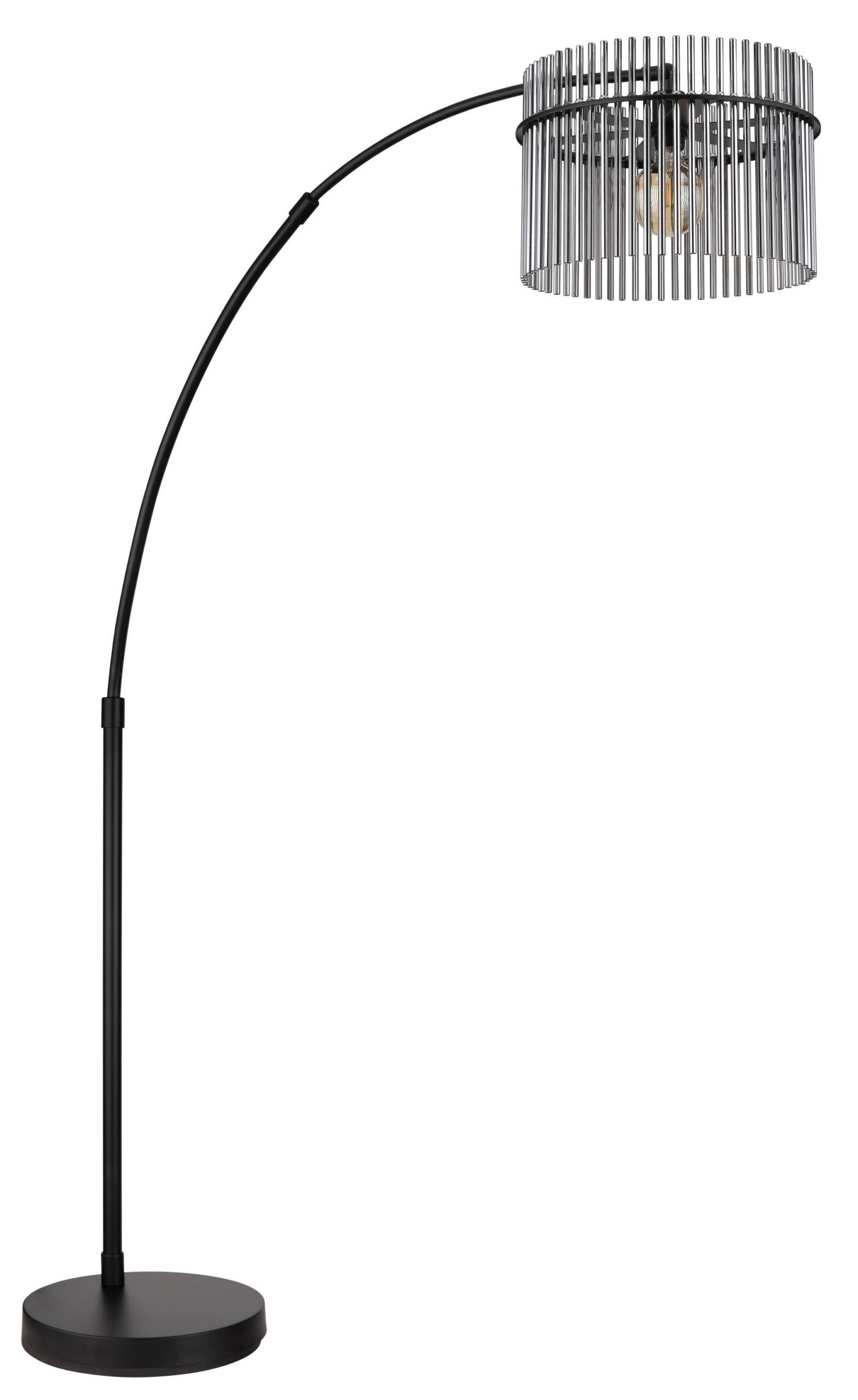 Descubre la lámpara de pie de Gorley, un complemento hermoso para tu interior. Esta lámpara destaca por su diseño elegante y su acabado de alta calidad. El marco metálico en un tono negro mate acogedor le da un aspecto moderno, mientras que las varillas de vidrio de la pantalla, con una apariencia ahumada, emiten un brillo cálido. La pantalla redonda cuenta con un innovador sistema telescópico, que proporciona una forma única y llamativa que atrae la atención.