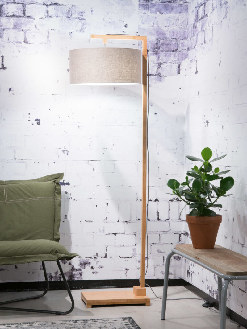 Lámpara de pie escandinava redonda gris de lino GOOD & MOJO Himalaya