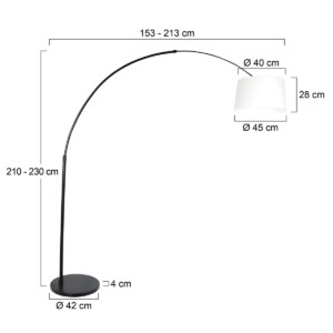 ¿Buscas una lámpara de arco grande, robusta y moderna? ¡Entonces te recomendamos encarecidamente la Lilac! Esta lámpara es sin duda robusta gracias a su estructura negra. En combinación con la pantalla blanca, la lámpara ofrece una apariencia lujosa y moderna. ¿Quieres más ambiente en tu sala de estar? ¡Coloca la Lilac junto al sofá en la sala! ¿Sueles cenar a menudo en la oscuridad? Una lámpara de pie como la Lilac también se puede colocar bien junto a la mesa del comedor. Esto es algo diferente a una lámpara colgante. ¿Qué espacio iluminarás pronto con esta gran lámpara de pie?