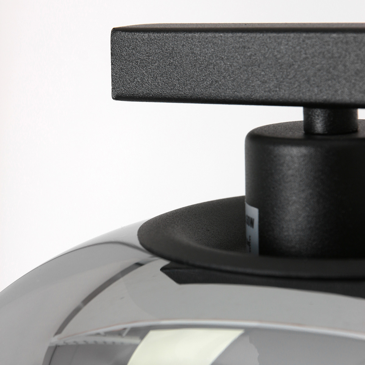 Lámpara de pie industrial negra con bola de vidrio ahumado Steinhauer Stang