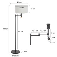 Ambas fuentes de luz se pueden controlar por separado a través de interruptores en el casquillo y el tubo de soporte. Gracias al brazo ajustable, la luz se puede dirigir exactamente donde sea necesario. Con una altura de 120 cm, un diámetro de base de 26 cm y una longitud de cable de 180 cm, esta lámpara de pie es una opción práctica y estilosa para el comedor, la sala de estar o la oficina (en casa).