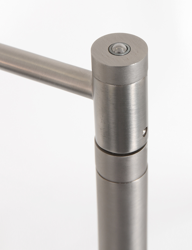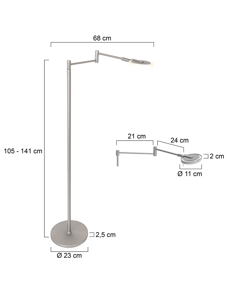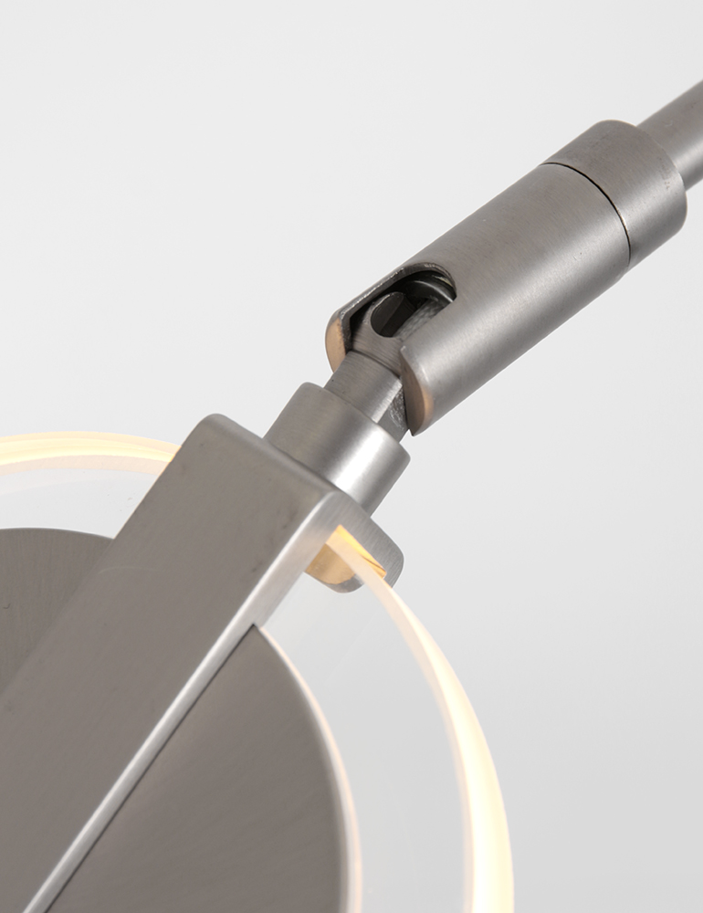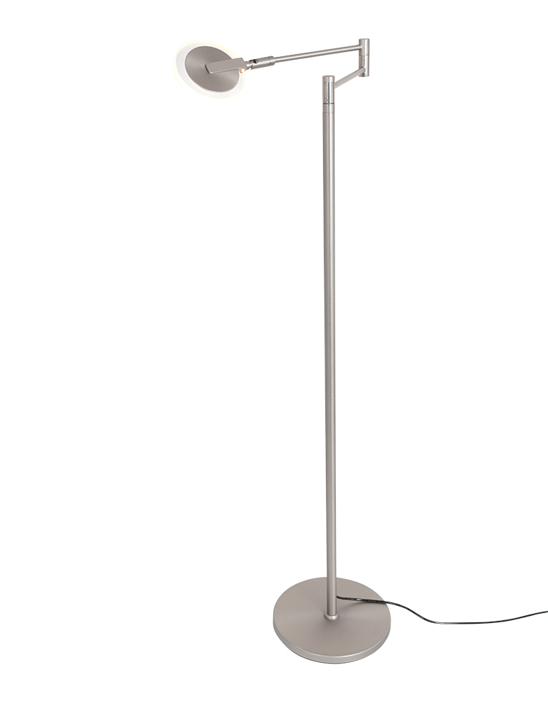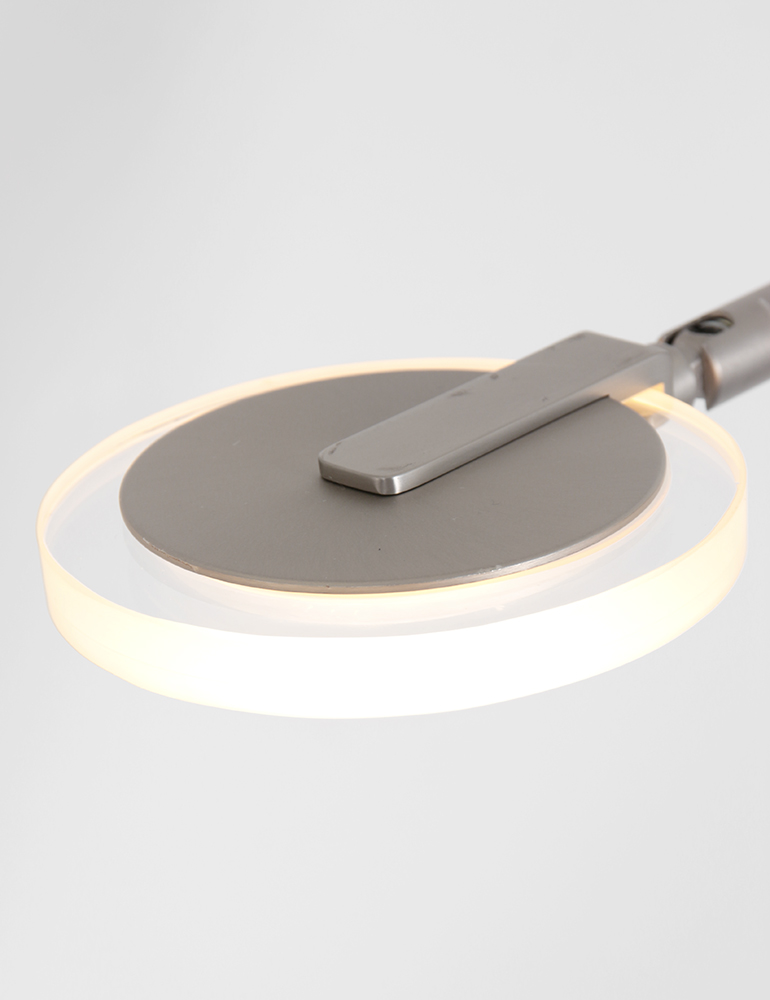 La lámpara de lectura Turound en color acero ofrece un equilibrio perfecto entre diseño y facilidad de uso. La lámpara está equipada con un reflector de vidrio transparente y un módulo LED de 10 vatios reemplazable con una salida de luz de 1000 lúmenes. El color de la luz es regulable entre 2200 y 4000 Kelvin, para que puedas ajustar la iluminación fácilmente a tus preferencias. El control se realiza a través del botón en el aparato. La altura es ajustable entre 100 y 140 cm, la base tiene un diámetro de 23 cm y el alcance del brazo de lectura es de 55 cm. Incluye un cable de 180 cm.