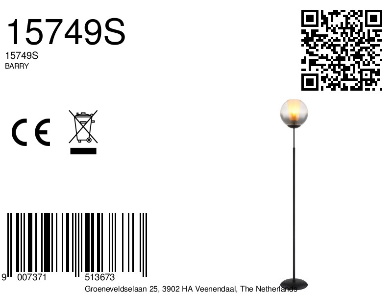 La lámpara de pie BARRY es un hermoso ejemplo de iluminación moderna, con una bola de vidrio contemporánea de 250 mm de diámetro. Esta lámpara ofrece una solución elegante para diversos espacios en su hogar. El cuerpo de la lámpara está fabricado en metal pintado de negro mate, mientras que la bola de vidrio ahumado añade un toque atemporal y elegante. El uso de cristal en la bola crea efectos de luz deslumbrantes cuando la lámpara está encendida.