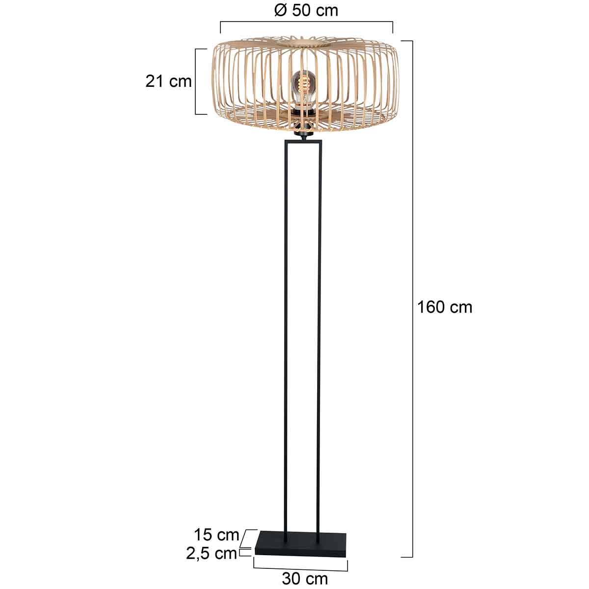 La lámpara de pie Stang de Steinhauer combina robustez industrial y elegancia natural. Este armazón de metal negro, con una altura de 160 cm, cuenta con una base E27 inclinable, para que la pantalla de bambú de 50 cm cuelgue siempre recta. El interruptor de encendido/apagado integrado en el cable aporta comodidad adicional. Ideal para una atmósfera acogedora en el comedor, dormitorio o sala de estar. Una lámpara de pie versátil para los amantes de un estilo bohemio con un acento industrial. Incluye 2 años de garantía del fabricante.