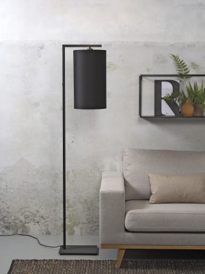 Lámpara de pie negra con pantalla cilíndrica de metal/algodón It’s About RoMi Boston