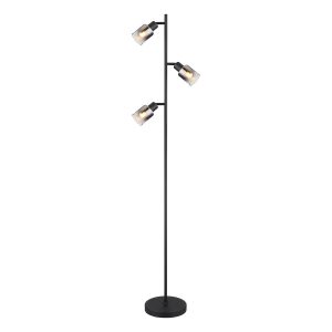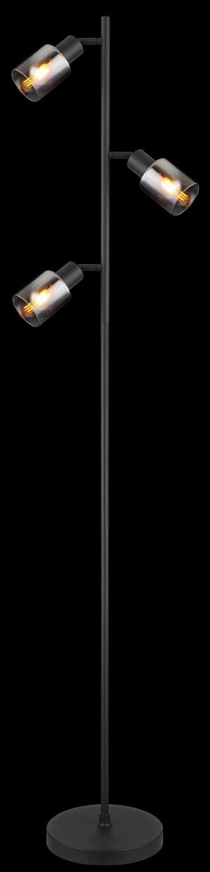 Lámpara de pie negra de 3 luces metal/cristal ahumado Globo Hubertus