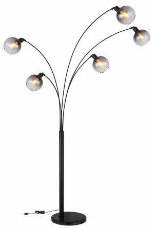 Lámpara de pie negra de 5 luces bolas de vidrio ahumado Globo Seymour