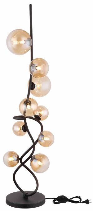 Lámpara de pie negra girada 9 bolas de vidrio ámbar Globo Tuberius