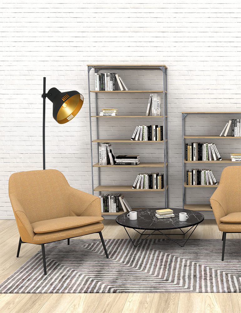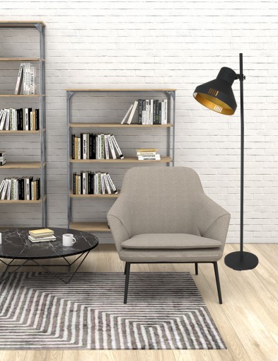 ¿Imaginas cómo quedaría esta gran lámpara de pie negra en tu salón? El acero negro captará toda la atención combinado con el color dorado del interior, creando un gran efecto tanto si la lámpara está encendida como apagada. No dudes en llevarte la lámpara de pie negra y dorada Mexlite Evy y descubre el resto de la colección para conseguir un efecto de revista.