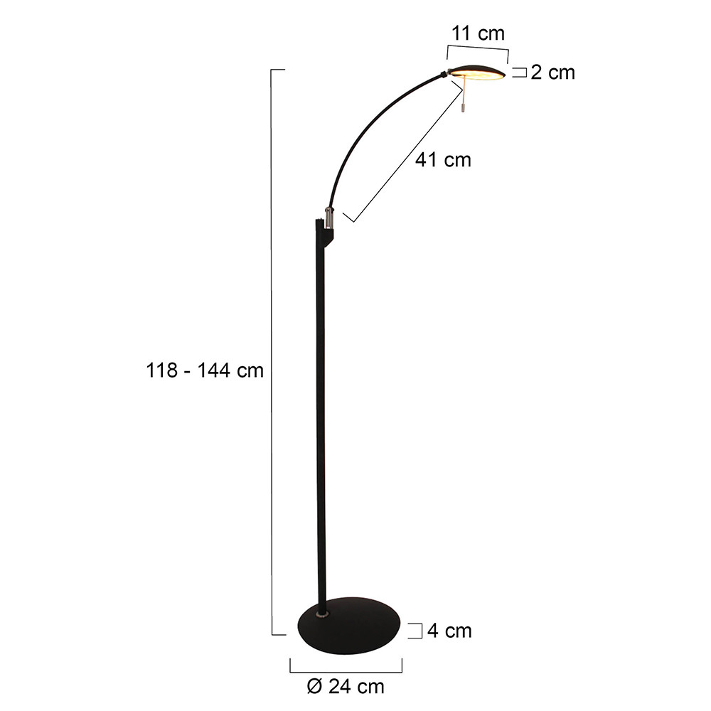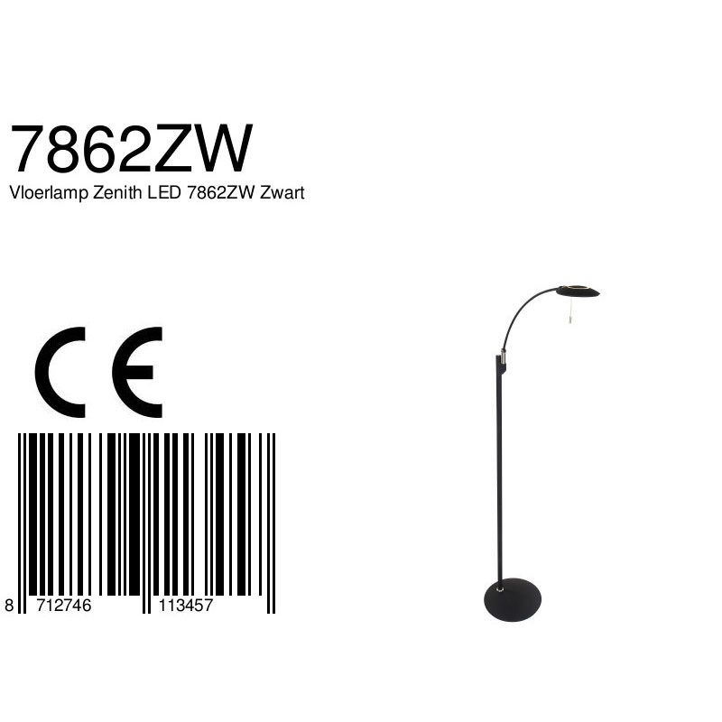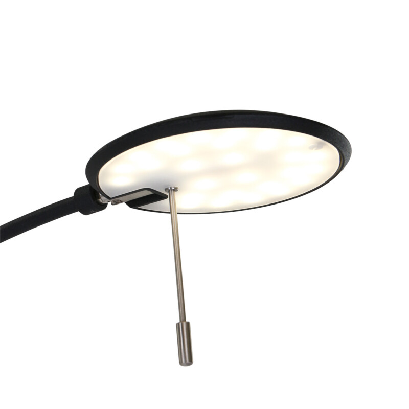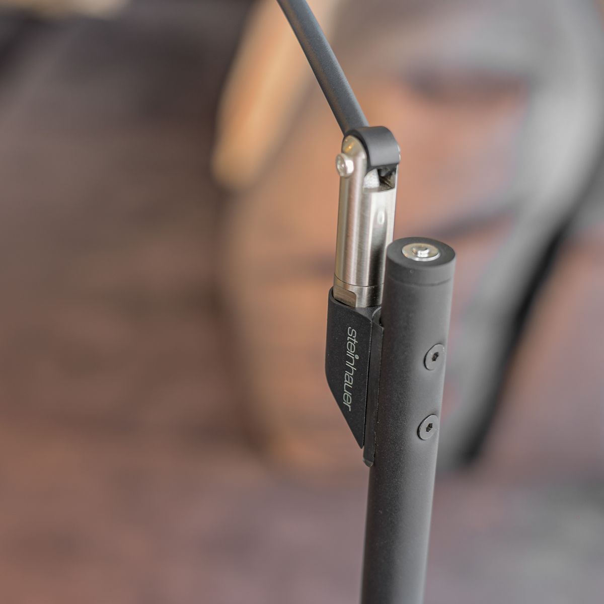 La lámpara de pie negra Zenith de Steinhauer combina un diseño elegante con una fácil funcionalidad. El módulo LED de 6 vatios ofrece luz brillante y es regulable en temperatura de color de 2200 a 4000 Kelvin. Con un brazo ajustable en altura y una pantalla que se puede girar e inclinar, puedes adaptar la iluminación fácilmente. El control se realiza a través de un atenuador de pulsación y el cable de 200 cm permite una colocación flexible.