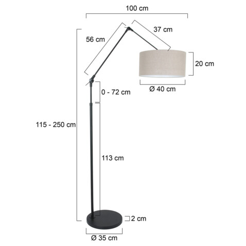 ¿Sigues buscando una bonita lámpara de pie para tu interior clásico? Steinhauer ha creado para ti esta elegante lámpara de pie negra. Cuenta con una pantalla de lámpara cubierta de tela beige. Sobre una base en forma de disco se alza un soporte súper delgado y elegante con un brazo articulado doble que tiene un alcance máximo de 250 cm. Esta “Prestige” puede darle a tu rincón de estar más dinamismo que nunca.