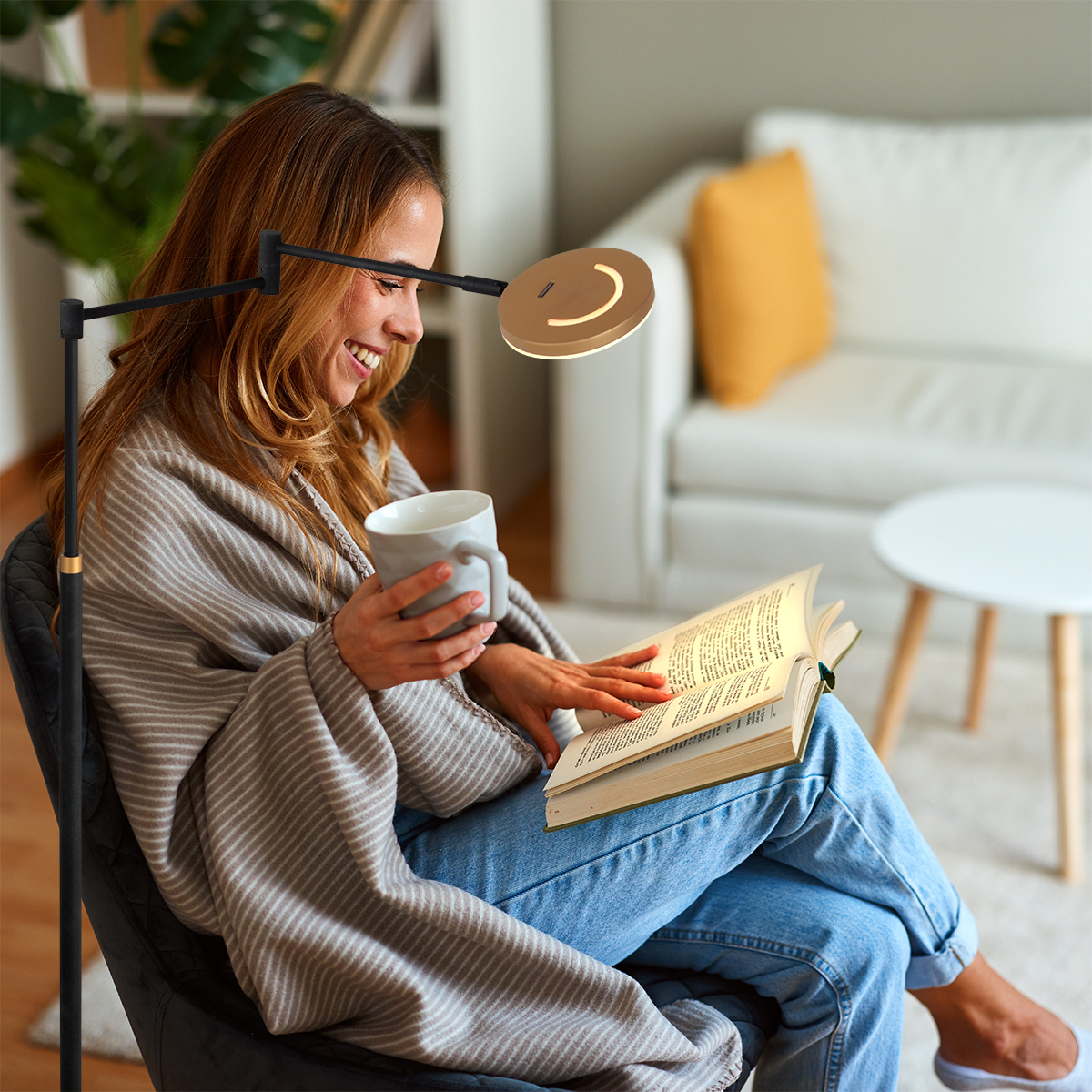 El brazo lateral ajustable permite dirigir la luz exactamente donde la necesitas, lo que la hace ideal para leer, trabajar o simplemente crear un ambiente acogedor. Gracias a su funcionamiento inalámbrico, puedes mover la lámpara fácilmente de la sala de estar a la habitación, o incluso al exterior, como la terraza o el balcón. Con su diseño compacto, facilidad de uso y apariencia elegante, la lámpara de pie Soleil 3515GO es una adición práctica y estética a cualquier espacio.