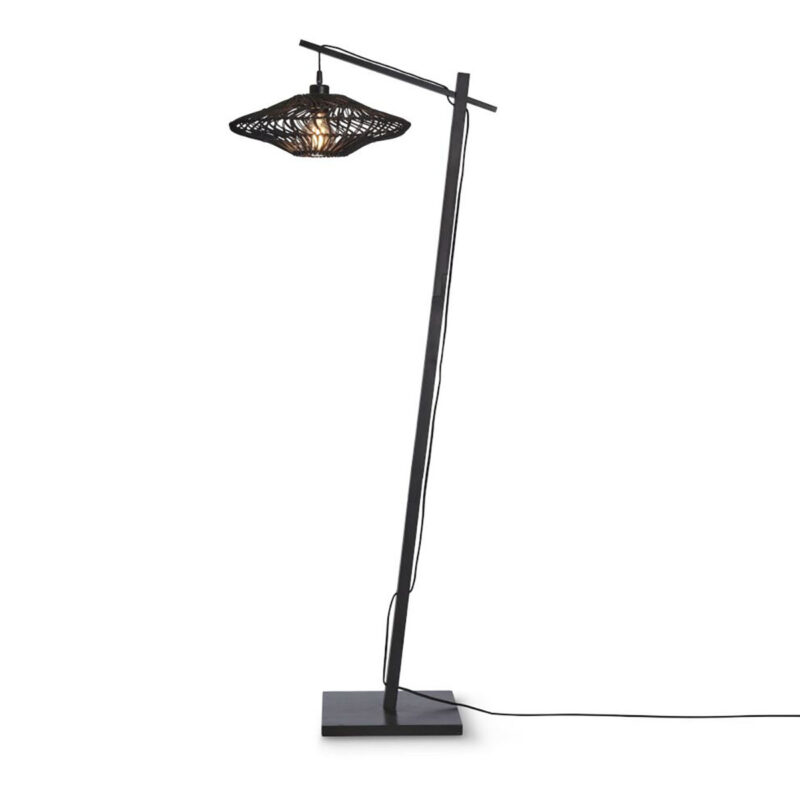 Lámpara de pie redonda en ratán negro estilo boho Zanzibar – GOOD&MOJO