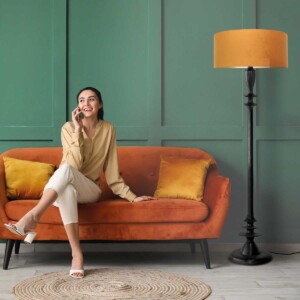 La lámpara de pie retro Steinhauer Bois combina una base de madera negra sólida con una pantalla de terciopelo color oro, lo que crea una apariencia juguetona y elegante. Los tonos cálidos profundos hacen que esta lámpara de pie sea perfecta para un interior vintage o rural. El casquillo E27 ajustable e inclinable permite dirigir la iluminación según desees. Con una altura de 143 cm y un diámetro de pantalla de 50 cm, esta lámpara añade un toque juguetón y único a la sala de estar, el comedor o la oficina en casa. Equipado con un interruptor de cable y 2 años de garantía.