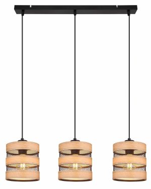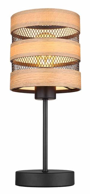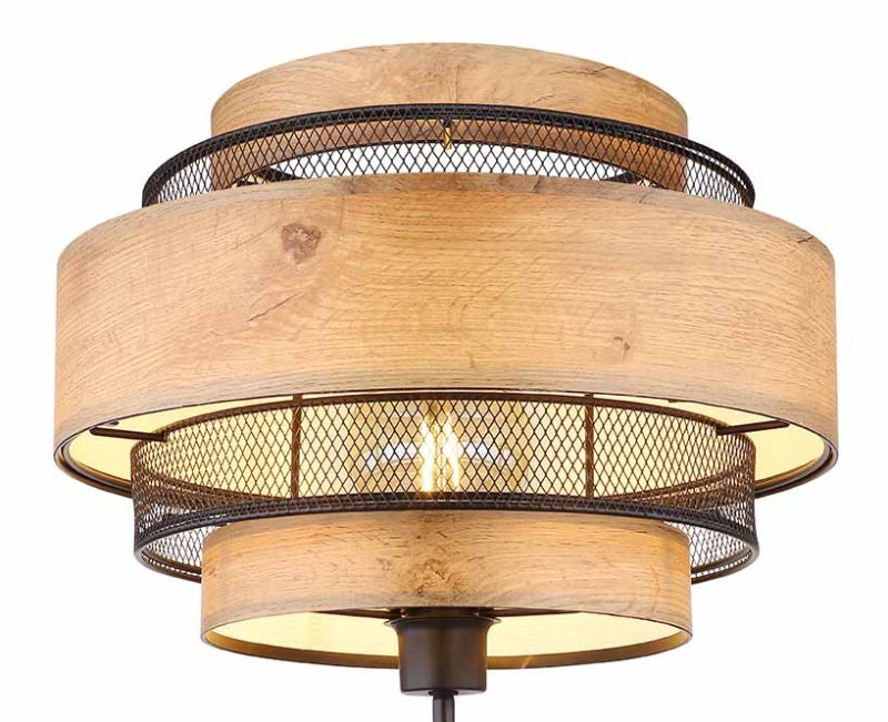 Esta increíble lámpara de pie inspira con su diseño sencillo. Un conector E27 sobresale de un trípode de metal negro mate a una altura de 1,5 m. El conector E27 está equipado con una hermosa pantalla hecha de rejillas metálicas y decoraciones con aspecto de madera (Ø60cm). Con esto, puede determinar el color y la intensidad de la luz hasta un máximo de 40 vatios.