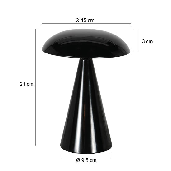 Lámpara de seta recargable negra con regulador táctil Anne Mush