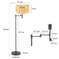 Lámpara de suelo ajustable con doble lámpara Steinhauer Stang naturel y negro