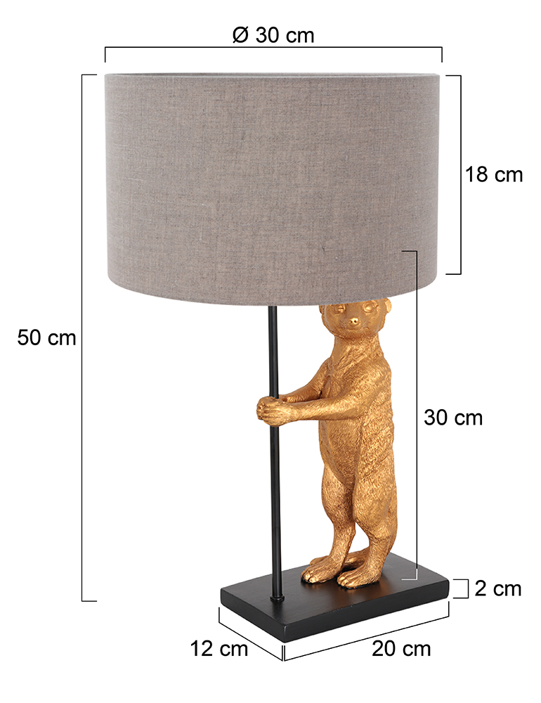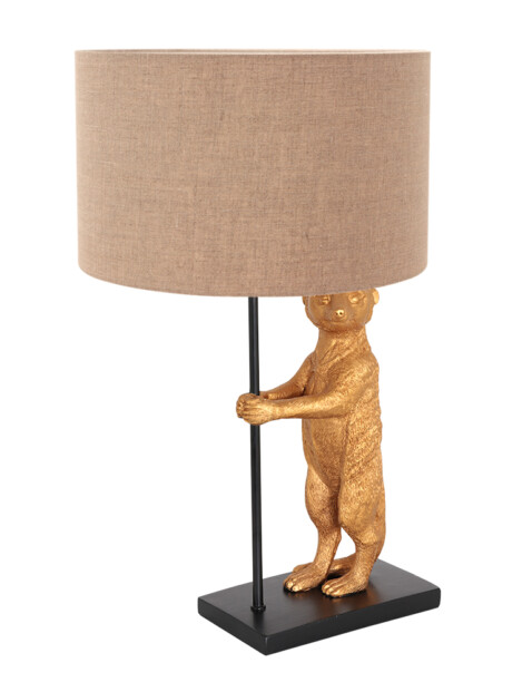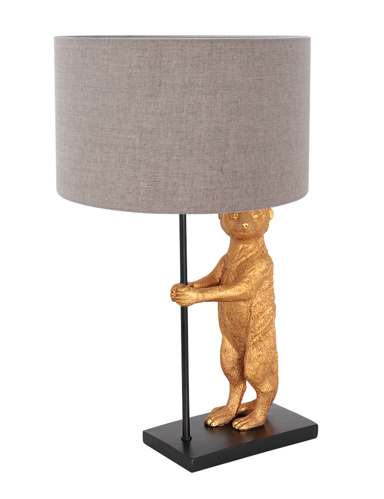 La lámpara de mesa en negro con dorado de la colección Animaux de Anne Lighting es una lámpara única que combina un encanto juguetón con un aspecto lujoso. La figura de suricata en color dorado forma una base llamativa y está equipada con un casquillo E27 entre las patas, adecuado para fuentes de luz de hasta 40W.