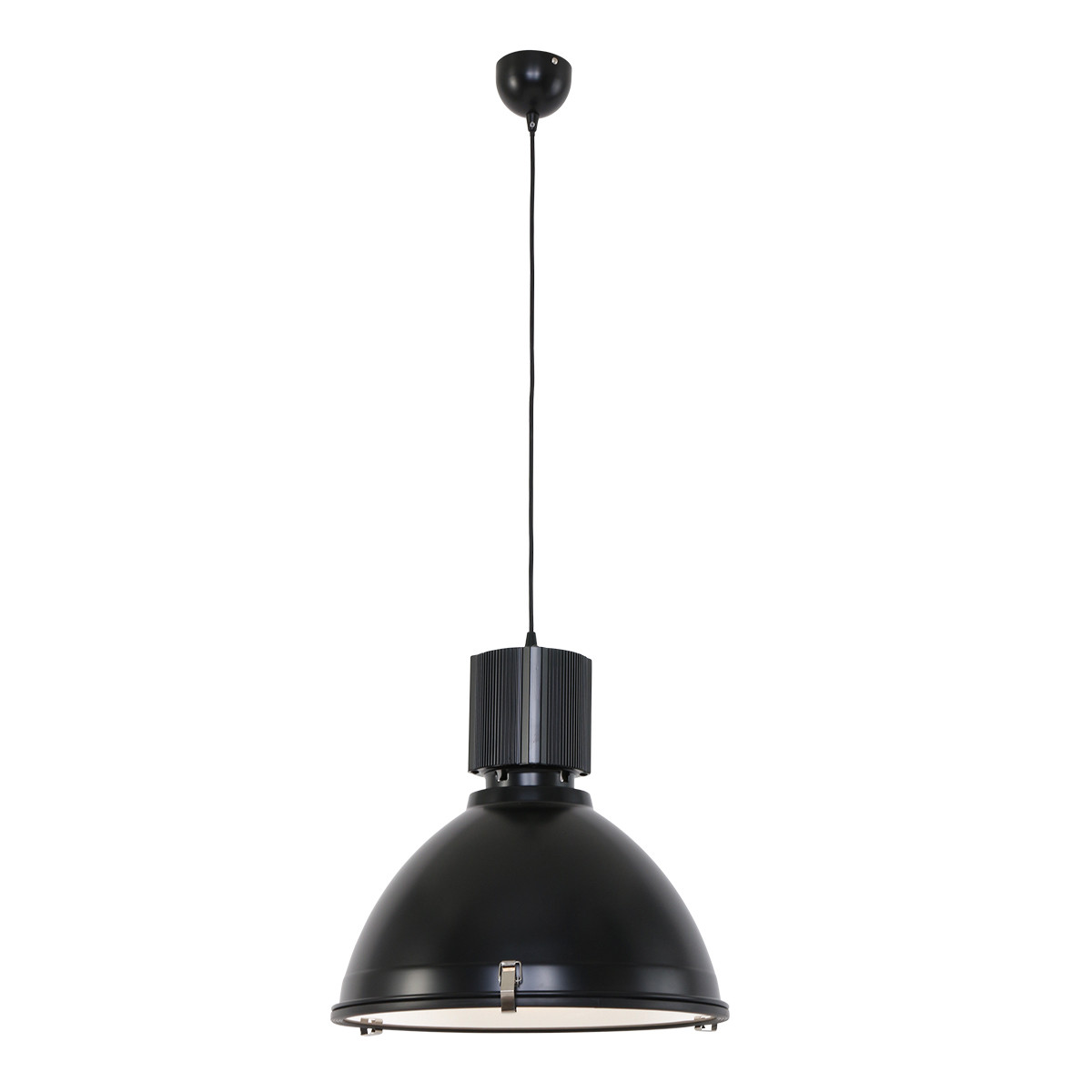 Lámpara colgante industrial redonda negra de metal/cristal esmerilado Steinhauer Warbier