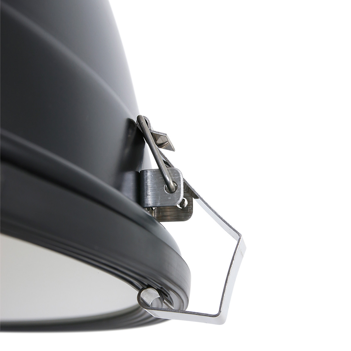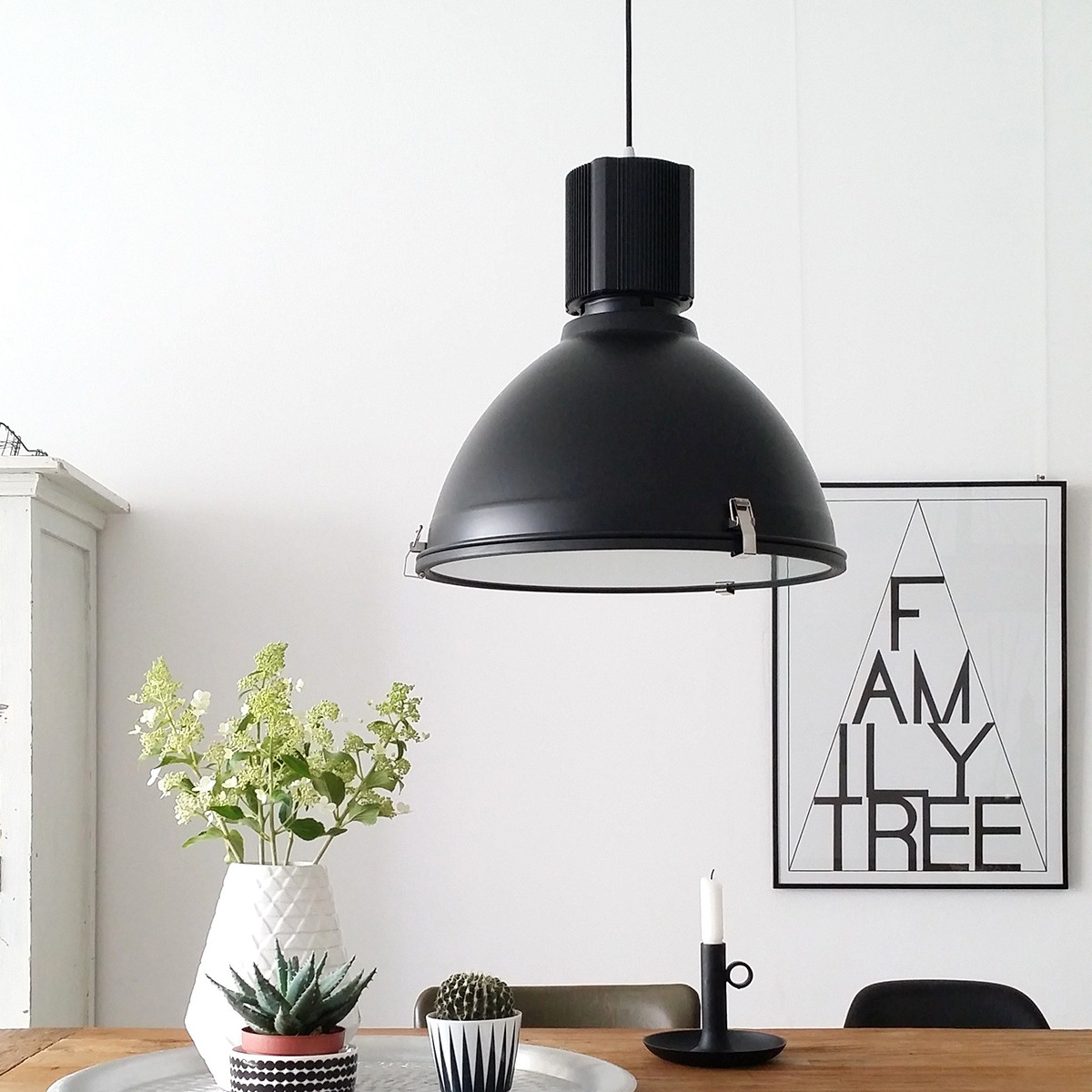 ¿Te parece genial y a la moda el estilo industrial? Es muy probable que “Warbier” de Steinhauer te atraiga mucho. Esta gran lámpara colgante es exactamente una lámpara de fábrica de principios del siglo pasado. Está pintada de negro mate, tiene abrazaderas que parecen auténticas y la luz se filtra a través del cristal opalino. Colocar dos de estas lámparas sobre tu mesa de comedor o isla de cocina hará una gran diferencia en el ambiente de tu interior.