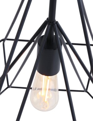 La lámpara de suspensión marco negro de alambre Mexlite Jenno es un ejemplo del estilo vanguardista y encaja a la perfección en un salón decorado con muebles modernos y elegantes. Su pantalla fabricada en forma de enrejado de metal negro transmite una agradable sensación de libertad y sofisticación. Su pantalla tiene un diámetro de 14 cm y la lámpara mide 140 cm de alto.