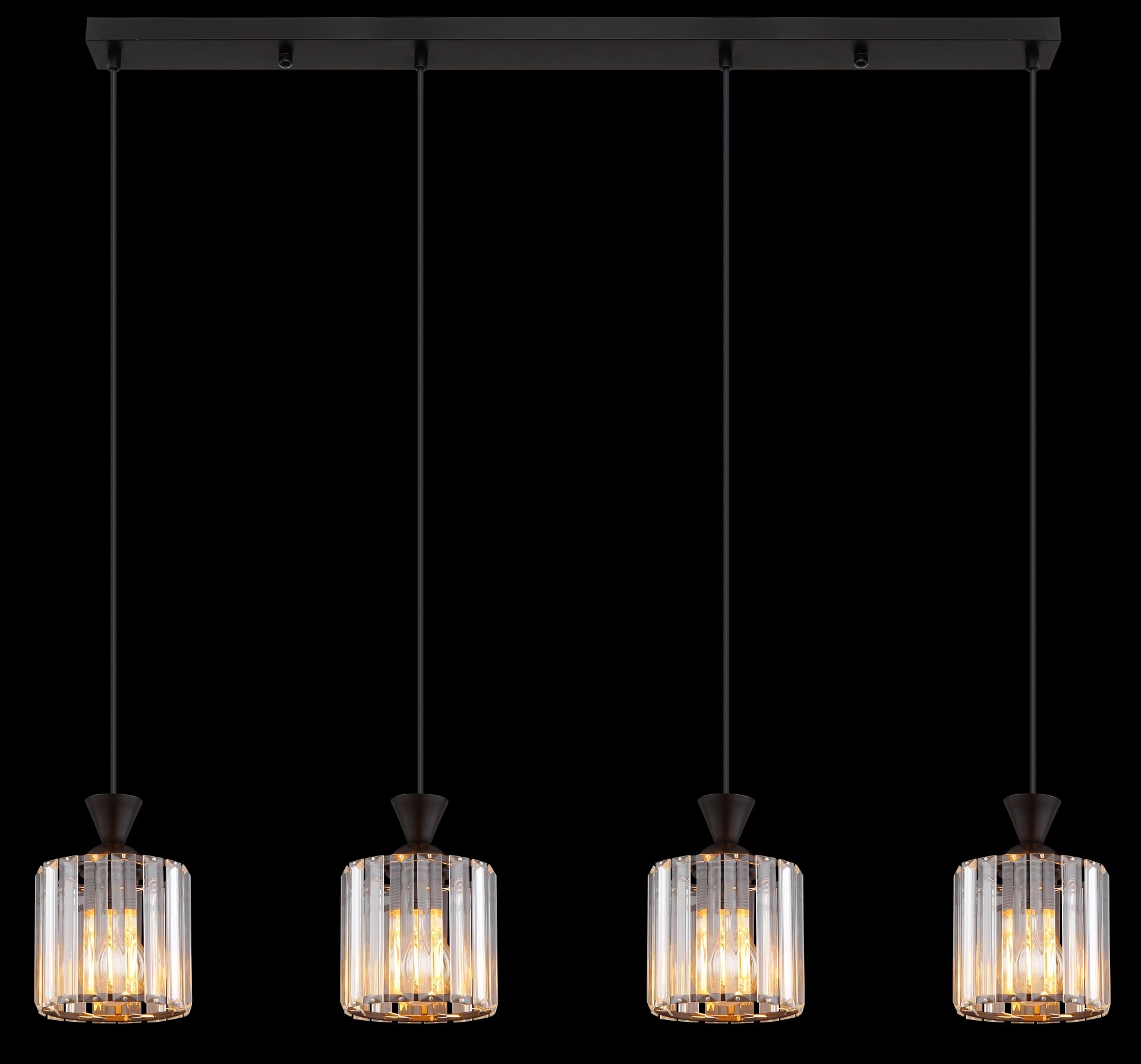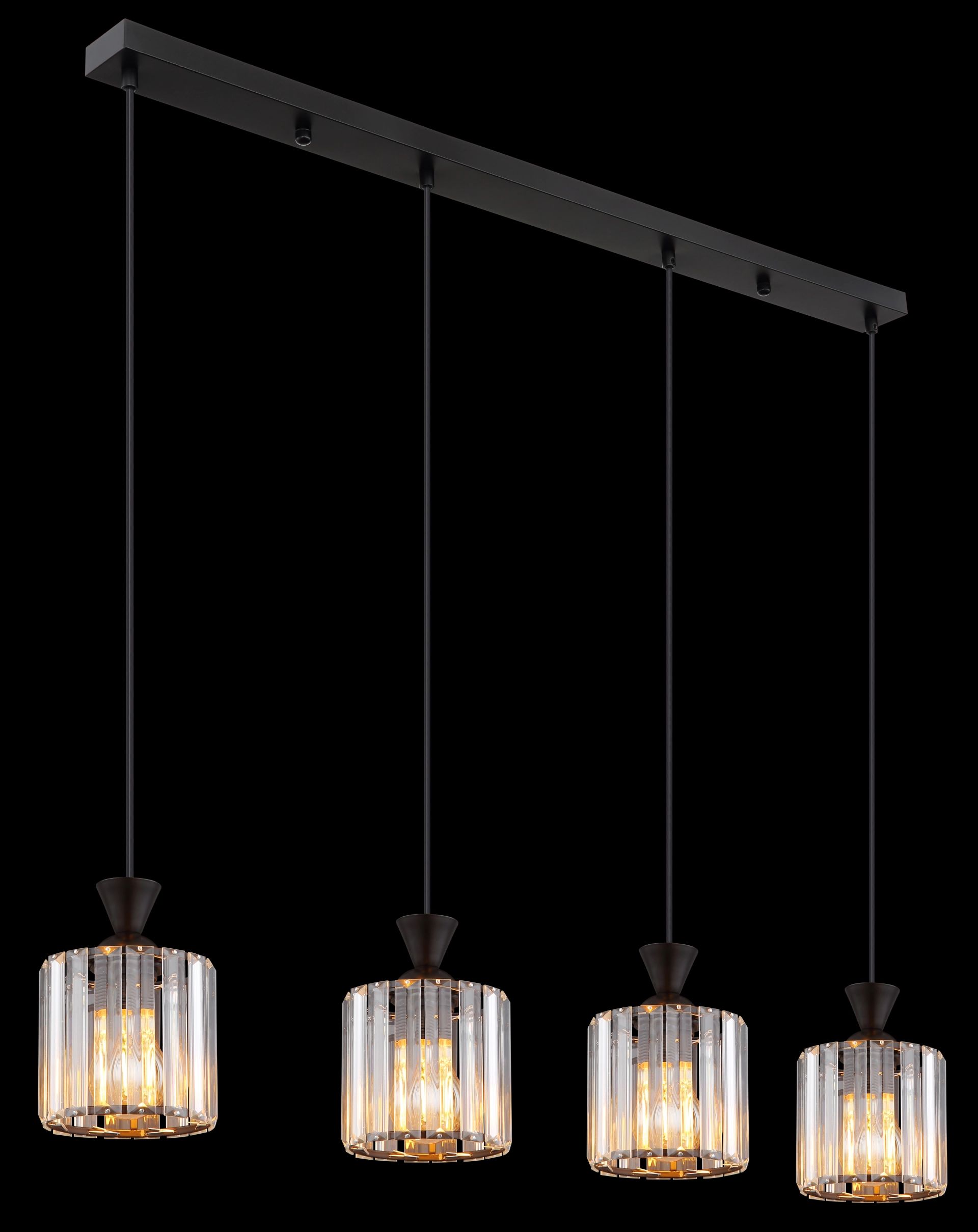 Esta moderna lámpara colgante tiene un diseño alargado y está fabricada en metal negro mate, adornada con cristales acrílicos claros. Gracias al riel recto y los cuatro colgantes, esta lámpara ofrece suficiente espacio para cuatro casquillos E27, cada uno con una potencia máxima de 60W. Con esto, puede crear una atmósfera brillante y refinada en cualquier habitación de su hogar. El marco de metal negro agrega una elegancia atemporal, mientras que los cristales acrílicos proporcionan un juego de luces deslumbrante que ilumina cualquier espacio.