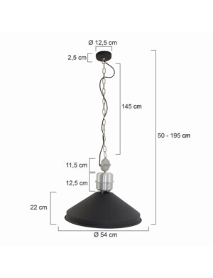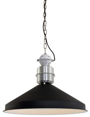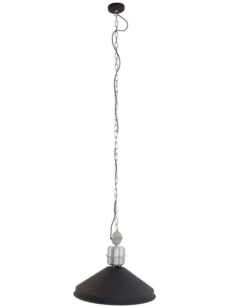 ¿Buscas un atractivo negro de más de medio metro de ancho? Esta gran lámpara colgante de Anne Light&Home lo es. “Zappa” es una lámpara de comedor de estilo industrial. En la parte superior de la pantalla hay detalles de color acero a los que se sujeta la robusta cadena. “Zappa” tiene en la misma serie una lámpara de escritorio y una de pie. ¡Mantén todo en estilo y combínalos todos!