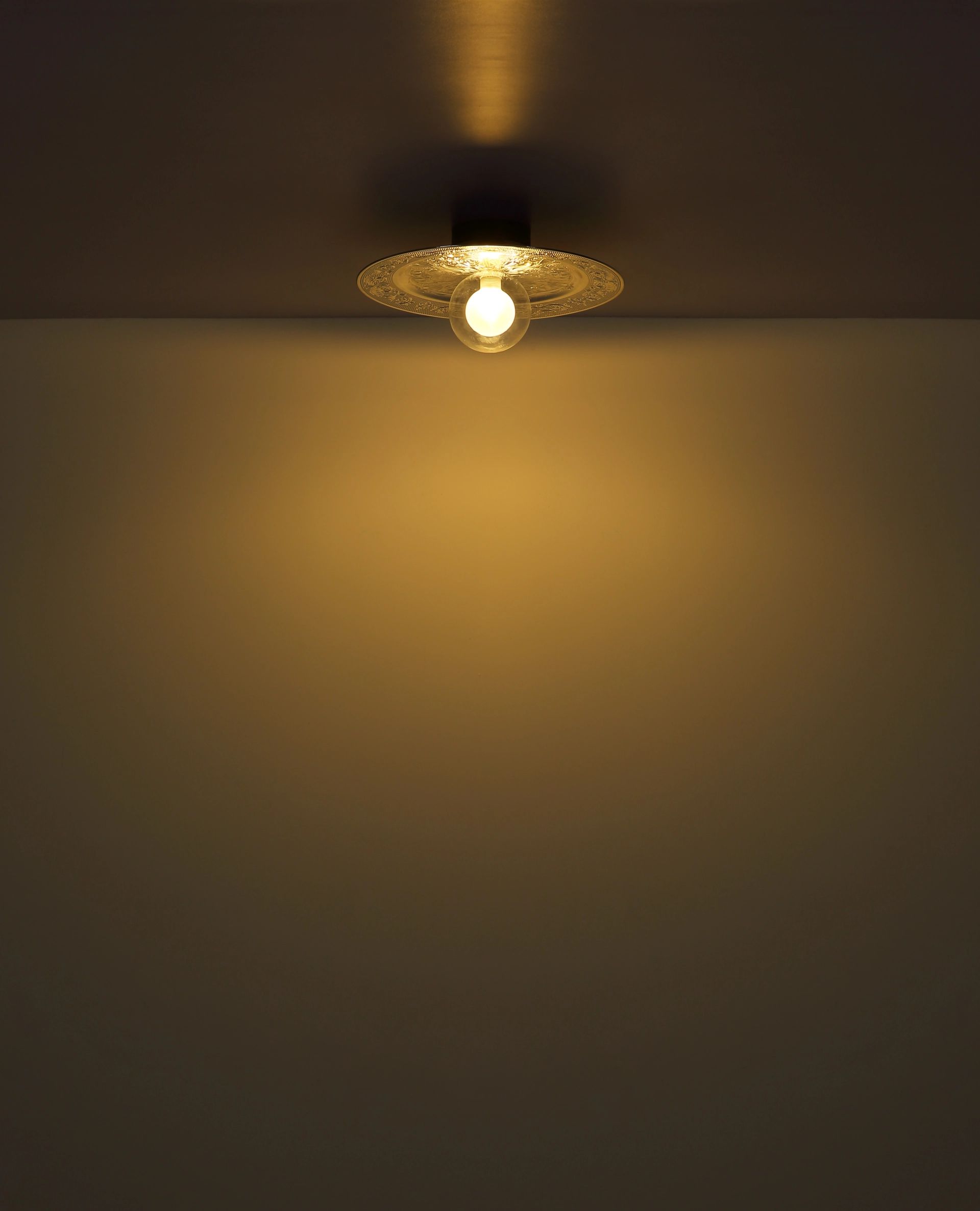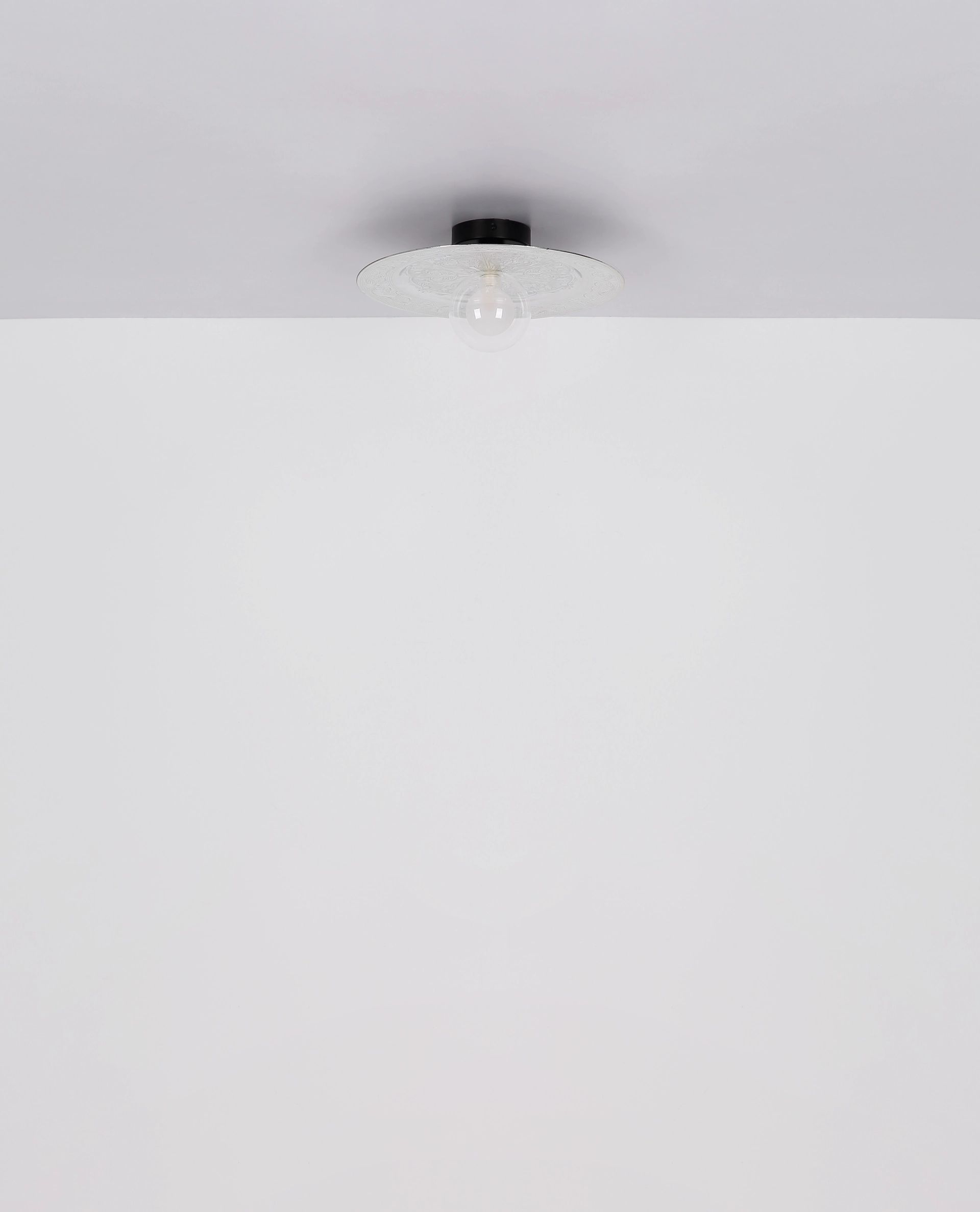 La lámpara de techo RIGA combina un diseño tradicional con una apariencia moderna, formando así un elegante punto focal en su interior. Con su diseño de disco redondo y plano y decoraciones elegantes, esta lámpara irradia una belleza atemporal, adecuada tanto para estilos clásicos como contemporáneos. El cuerpo de metal y plástico negro mate realza el conjunto refinado, mientras que la pantalla de plástico plateado, en combinación con vidrio opalino y transparente, asegura una distribución de luz armoniosa.