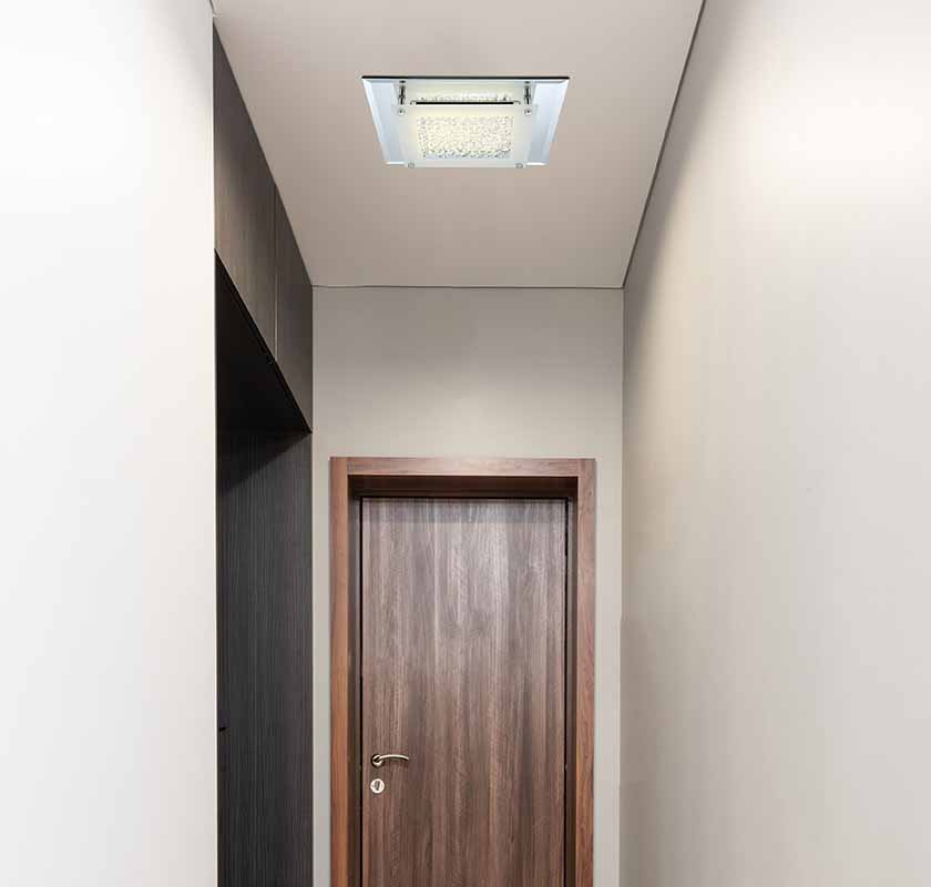 Lámpara de techo cuadrada de cromo con placa de cristal Globo Liana