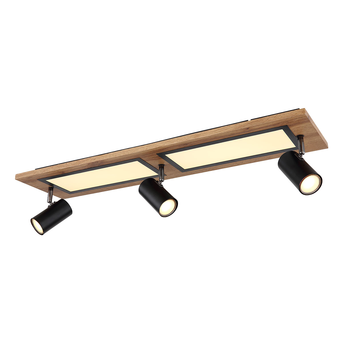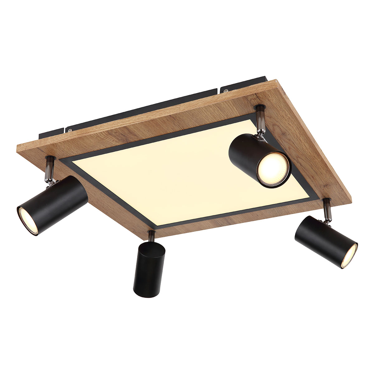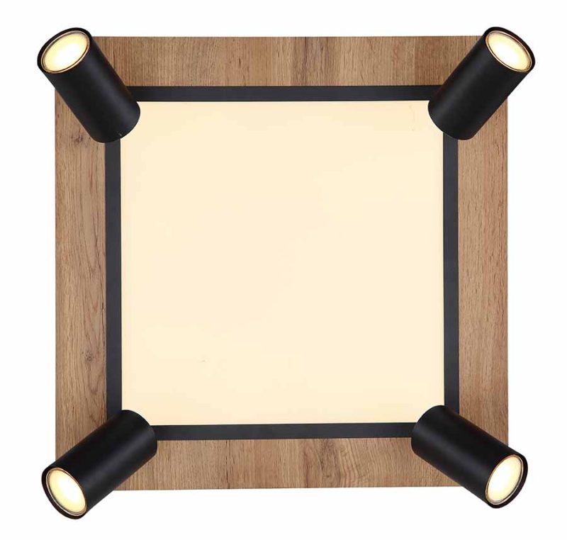 Experimenta la mezcla única de diseño y funcionalidad con esta hermosa lámpara de techo. Cuenta con un panel cuadrado de madera de 45×45 cm con una placa LED central, rodeada de cuatro casquillos GU10 en negro mate. La placa LED ofrece una cómoda emisión de luz blanca cálida de 3000 Kelvin y proporciona una impresionante potencia de 24W. Una de las ventajas de este modelo es una función de memoria que te permite guardar tus configuraciones de luz más recientes para uso futuro.